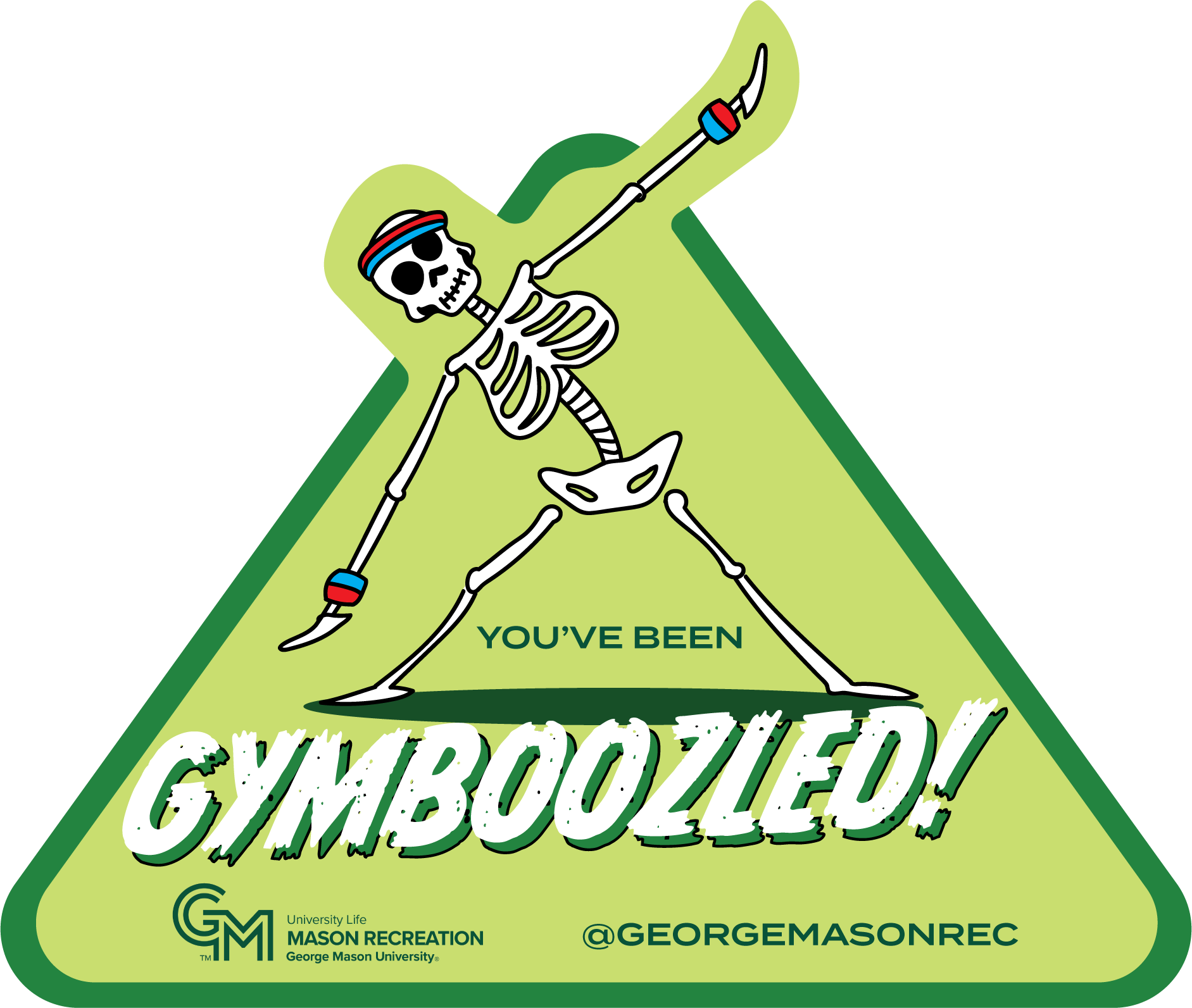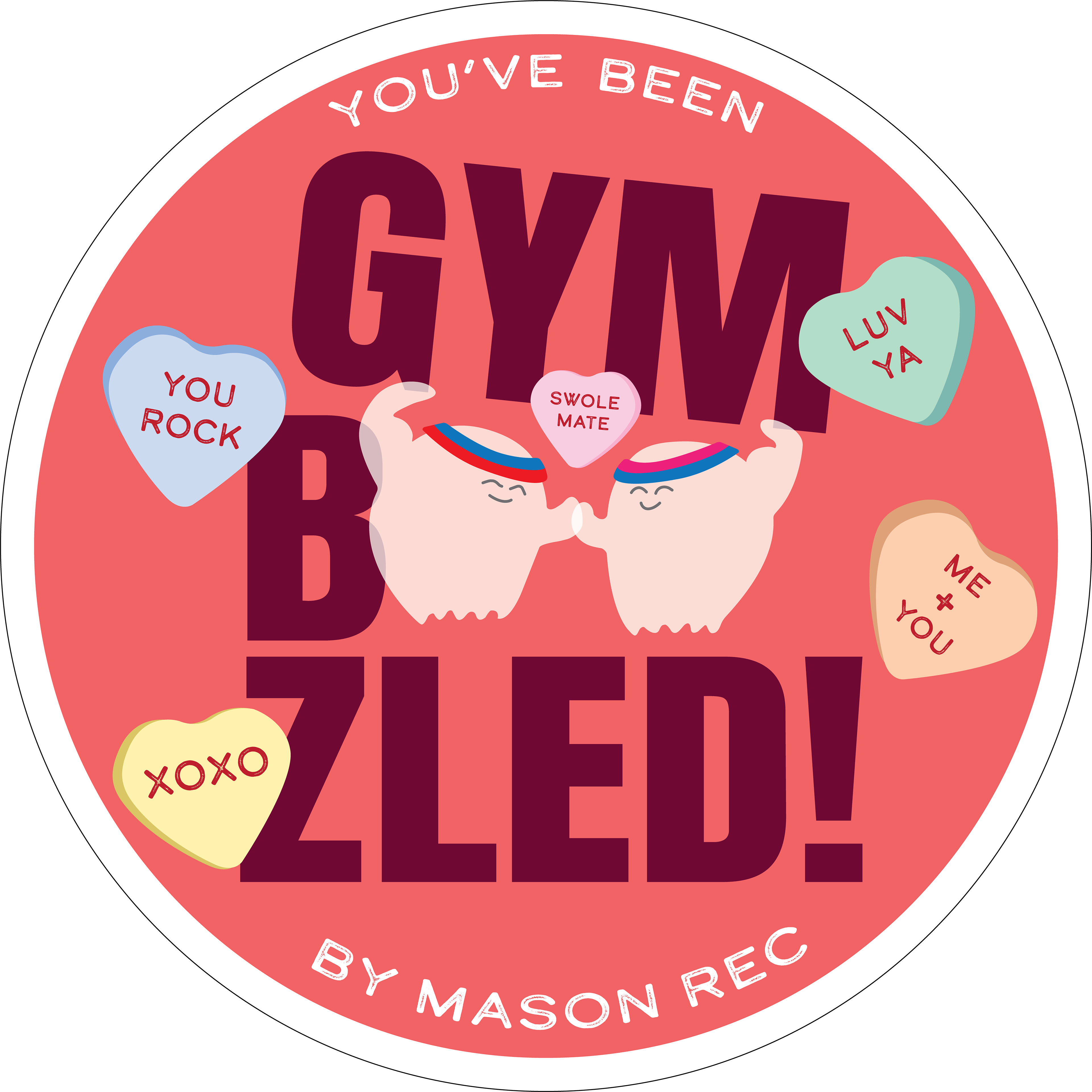 Sticker designs for Gymboozled! activities for the month of October 2024 (Halloween) and February 2023 (Valentine's day).